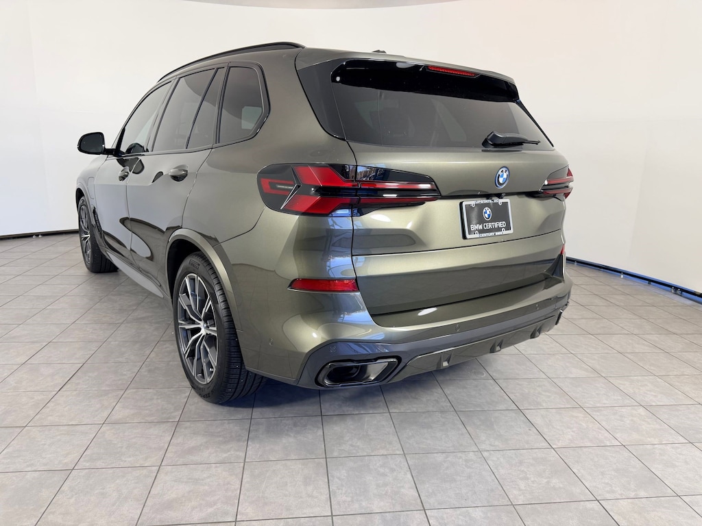 Under the hood, the 2025 BMW X5 xDrive50e features an advanced plug-in hybrid powertrain that combines a turbocharged engine with an electric motor to deliver impressive power and smooth acceleration. This intelligent system allows for electric driving capability while maintaining the performance expected from a BMW luxury SUV. Paired with BMW's intelligent xDrive all-wheel drive system and a precision-tuned transmission, the X5 provides confident traction, responsive handling, and a composed ride in a variety of driving conditions.