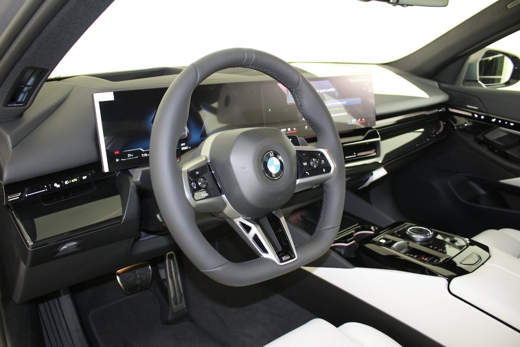 WHEELS: 20" X 8.5" FR & 20" X 10.0" RR M STAR-SPK -inc: Style 938M, Bicolor black, Tires: 245/40R20 Front & 275/35R20 Rear All Season, Staggered, SMOKE WHITE, PERFORATED & QUILTED VEGANZA UPHOLSTERY, REMOTE ENGINE START, PREMIUM PACKAGE -inc: Remote Engine Start, BMW Curved Display w/HUD, Parking View w/3D View (Surround View), Heated Steering Wheel, Interior Camera, Premium Content 1, Parking Assistant Plus, OXIDE GREY METALLIC, MULTI-FUNCTION SEATS, M SPORT PACKAGE -inc: Shadowline Exterior Trim, M Steering Wheel, M Sport Exterior Elements, M Sport Content, M Sport Pkg, M Sport Brakes w/Blue Calipers, M Sport Interior Elements, M Sport Suspension, Wheels: 19" x 8.5" M Dual-Spoke Bicolor Black, Style 935M, M SPORT BRAKES W/BLUE CALIPERS, LUXURY SEATING PACKAGE -inc: Front Ventilated Seats, Multi-Function Seats, Front & Rear Heated Seats, HEATED STEERING WHEEL. This BMW 5 Series has a powerful Intercooled Turbo Gas/Electric I-4 2.0 L/122 engine powering this Automatic transmission.