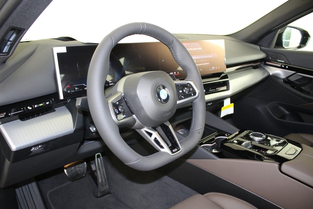 WHEELS: 20" X 8.5" FR & 20" X 10.0" RR M STAR-SPK -inc: Style 938M, Bicolor black, Tires: 245/40R20 Front & 275/35R20 Rear All Season, Staggered, REMOTE ENGINE START, PREMIUM PACKAGE -inc: Remote Engine Start, BMW Curved Display w/HUD, Parking View w/3D View (Surround View), Heated Steering Wheel, Interior Camera, Premium Content 1, Parking Assistant Plus, M SPORT PACKAGE -inc: Shadowline Exterior Trim, M Steering Wheel, M Sport Exterior Elements, M Sport Content, M Sport Pkg, M Sport Brakes w/Blue Calipers, M Sport Interior Elements, M Sport Suspension, Wheels: 19" x 8.5" M Dual-Spoke Bicolor Black, Style 935M, M SPORT BRAKES W/BLUE CALIPERS, HEATED STEERING WHEEL, FRONT VENTILATED SEATS, ESPRESSO BROWN, PERFORATED & QUILTED VEGANZA UPHOLSTERY, DRIVING ASSISTANCE PROFESSIONAL PACKAGE -inc: Hands-free driving up to 85mph on selected highways (8 years of service included), Lane Change Assistant, Driving Assistant Professional, Partial Automated Driving, Limited Term Highway Assistant, BLACK SAPPHIRE METALLIC. This BMW 5 Series has a dependable Intercooled Turbo Gas/Electric I-4 2.0 L/122 engine powering this Automatic transmission.