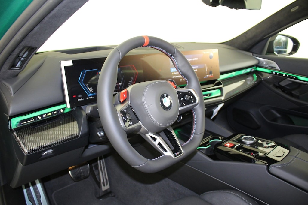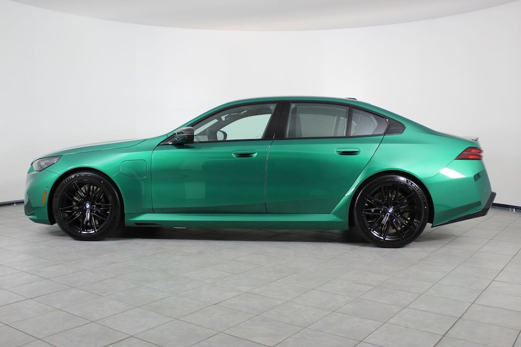 WHEELS: 20" X 10.5" FR & 21" X 11" RR JET BLACK -inc: Style 951M, M dual-spoke, M DRIVE PROFESSIONAL, M COMPOUND BRAKES W/BLACK CALIPERS, ISLE OF MAN GREEN METALLIC, FRONT VENTILATED SEATS, FRONT & REAR HEATED SEATS, EXECUTIVE PACKAGE -inc: Front Ventilated Seats, Parking View w/3D View (Surround View), Interior Camera, Power Rear Sunshade & Rear Side Window Shades, Front & Rear Heated Seats, BMW Iconic Glow Kidney Grille, Parking Assistant Plus, DRIVING ASSISTANCE PROFESSIONAL PACKAGE -inc: Lane Change Assistant, Driving Assistant Professional, Partial Automated Driving, Hands-free driving up to 40 mph on selected highways, Traffic Jam Assistant, CARBON PACKAGE -inc: M Carbon Exterior Package, Mirror Caps, Carbon Fiber Reinforced Polymer Roof, Spoiler, CARBON FIBER SILVER THREAD HIGH GLOSS TRIM -inc: dark silver accent. This BMW M5 has a dependable Twin Turbo Gas/Electric V-8 4.4 L/268 engine powering this Automatic transmission.