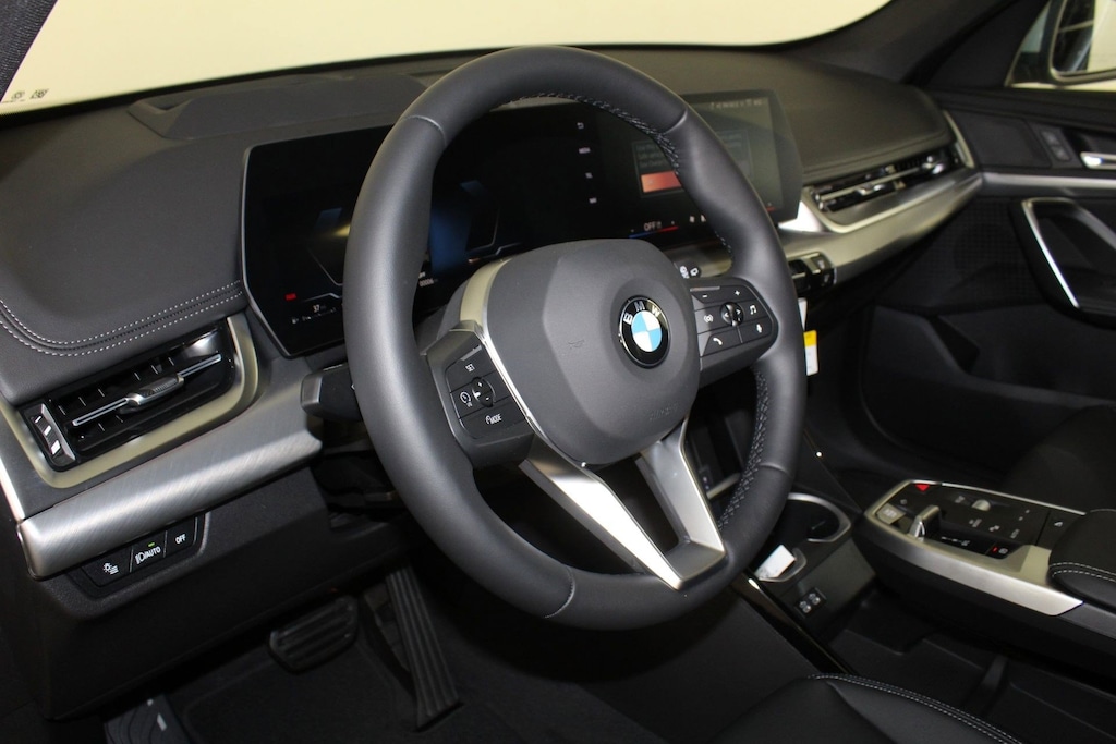 WHEELS: 19" X 8.0" Y-SPOKE BI-COLOR -inc: Style 867, Tires: 245/45R19 All Season, UNIVERSAL GARAGE-DOOR OPENER, TRANSMISSION: 7-SPEED DUAL CLUTCH (STD), TECHNOLOGY PACKAGE -inc: drive recorder, Remote Engine Start, Live Cockpit Pro, HUD and video augmented reality that overlays real-time navigation directions, arrows, and more live video from the Surround View cameras on the central display, Parking View w/3D View (Surround View), Head-Up Display, Heated Steering Wheel, Panoramic Moonroof, Anti Theft Recorder, Premium Content 1, Parking Assistant Plus, SPACE SILVER METALLIC, DRIVING ASSISTANCE PLUS PACKAGE -inc: Driving Assistance Plus, camera/radar based driver assist system and basic Steering and Lane Control Assistant, which applies corrective steering to help the driver stay centered in the lane up to 100 MPH, Also available in ConnectedDrive store w/9QV, Distance Control (ACC) w/Steering Assistant, Stop & Go function, BLACK, PERFORATED VEGANZA UPHOLSTERY, ALUMINUM INTERIOR TRIM W/AMBIENT LIGHT, Wireless Phone Connectivity, Wireless Device Charging. This BMW X1 has a powerful Intercooled Turbo Premium Unleaded I-4 2.0 L/122 engine powering this Automatic transmission.
